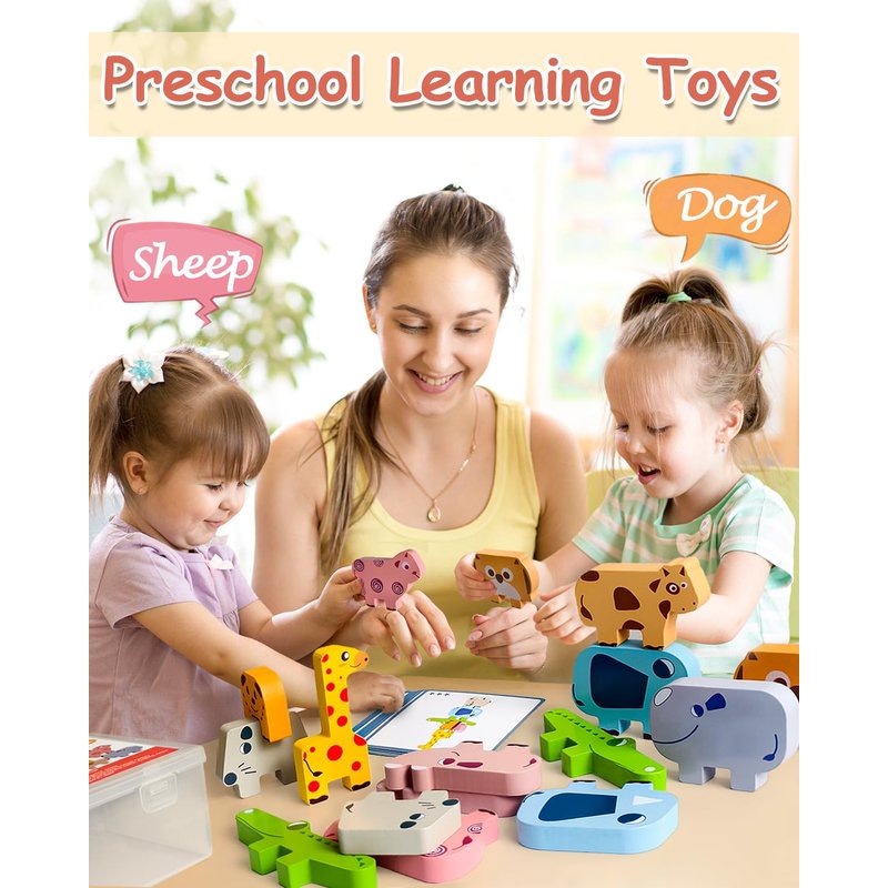 - 【Great Gifts for Boys Girls Kids】You can accompany your child when he plays with wooden toys. Bright and beautiful colors and cute animal shapes can attract your child's attention, and can enhance your child's ability to learn colors-encourage sensory stimulation and brain development. Wooden montessori toys are excellent gifts for 1 2 3 4 year old girls and boys. It also comes with a storage box.