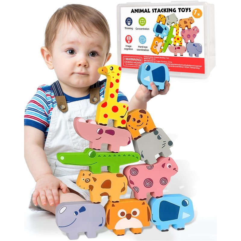 Montessori Toys for 1 2 3 4 Year Old Boys Girls, Toddler Toys Age 2-4, 1 2 3 4 Year Old Girl Boy Birthday Gifts, 10 pack Wooden Animal Blocks Sorting & Stacking Education Toddler Puzzles Toys