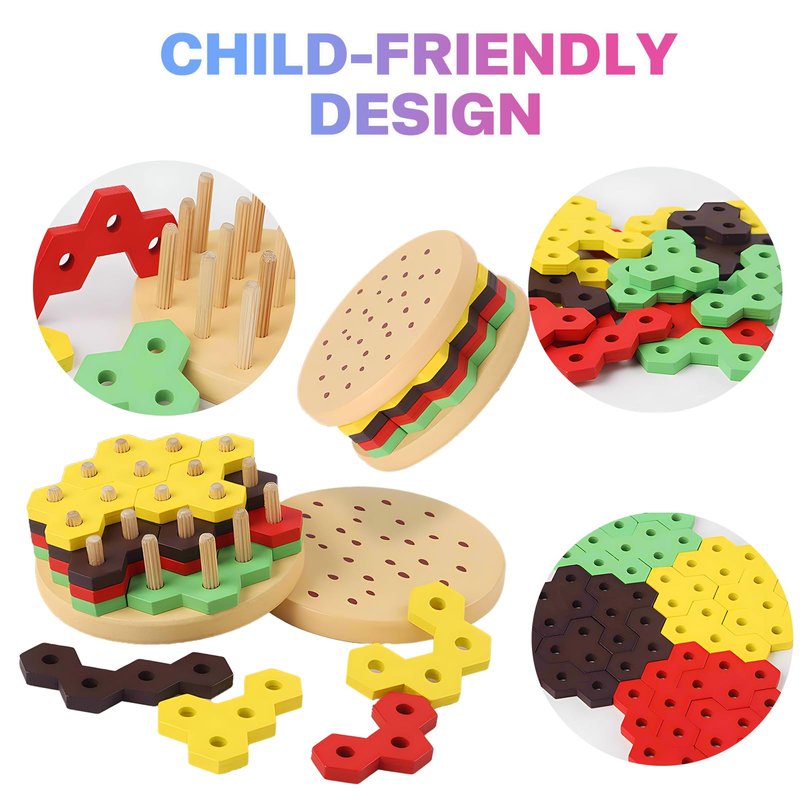 - 【CHALLENGE HIGH DIFFICULTY】 The puzzle burger inspires babies to explore different geometric shapes and rich colors, challenging them with various assembly difficulties from small to large burgers, enhancing spatial thinking and fine motor skills.