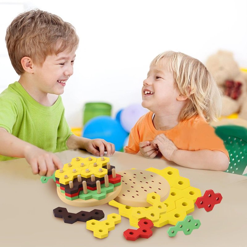 - 【PERFECT GIFTS SUITABLE FOR CHILDREN】 Suitable for 3-7-year-old baby sensory toys, exquisite size, easy to carry in infants and young children. This creative burger toy is full of challenges and fun. It is perfect parent-child interactive toys. You can explore this interesting puzzle game with your children.