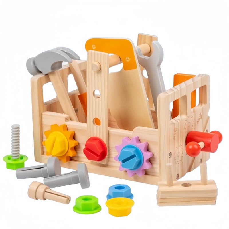 - Features: Rich toy functions, storage box on both sides can be freely assembled, diverse play. It is equipped with a variety of screws and nuts, as well as screwdriver tools, wrenches, rulers, wooden hammers, pliers and other common wooden tools suitable for children's hands, assembled portable design, not only can cultivate a good habit of storage, but also allow children to enjoy the fun of the game anytime and anywhere