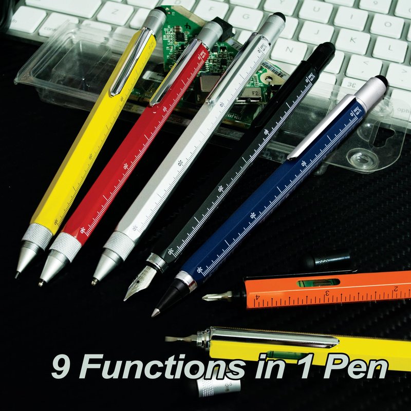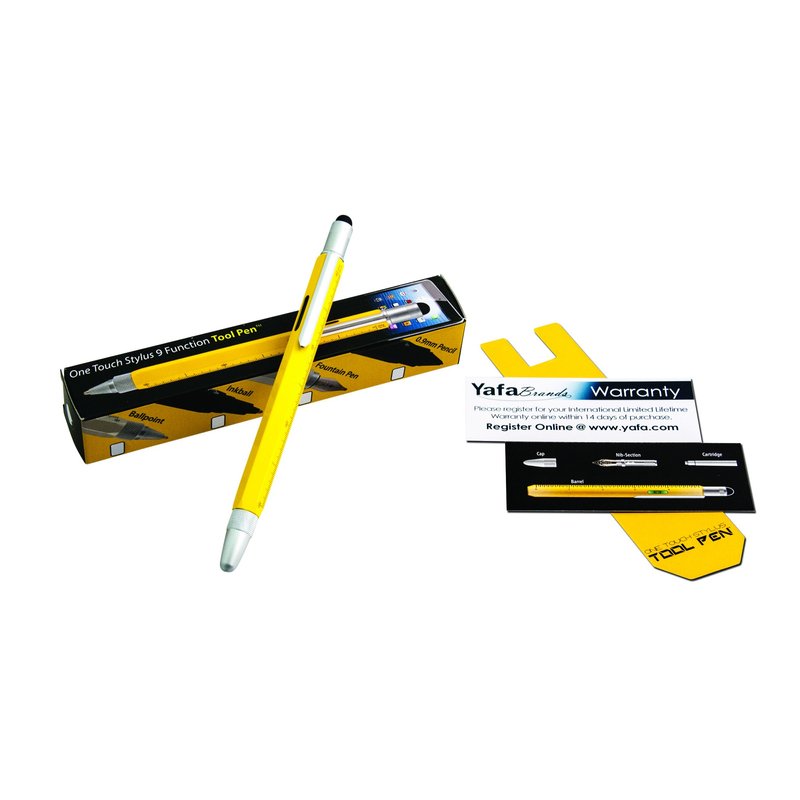 - Multifunctional Design: The pen features nine essential tools, including a stylus, Phillips and flat-head screwdrivers, a built-in level, ruler, and more, all housed in a vibrant yellow barrel. The stylus offers precise navigation on touchscreen devices.