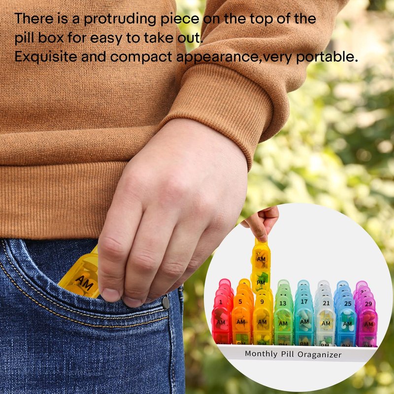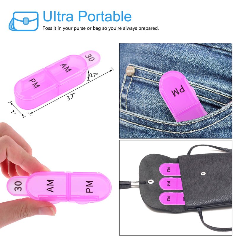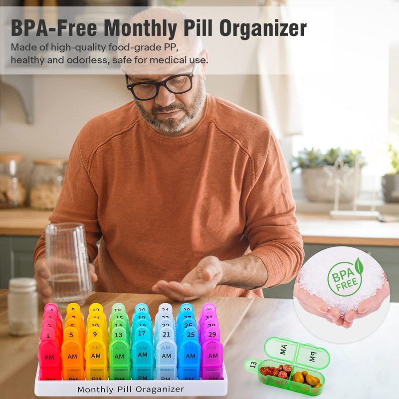 Package Included: 1 Pack 30 Day Pill Organizer 2 Times A Day Medicine Organizer Moisture-Proof BPA-Free Pill Cases