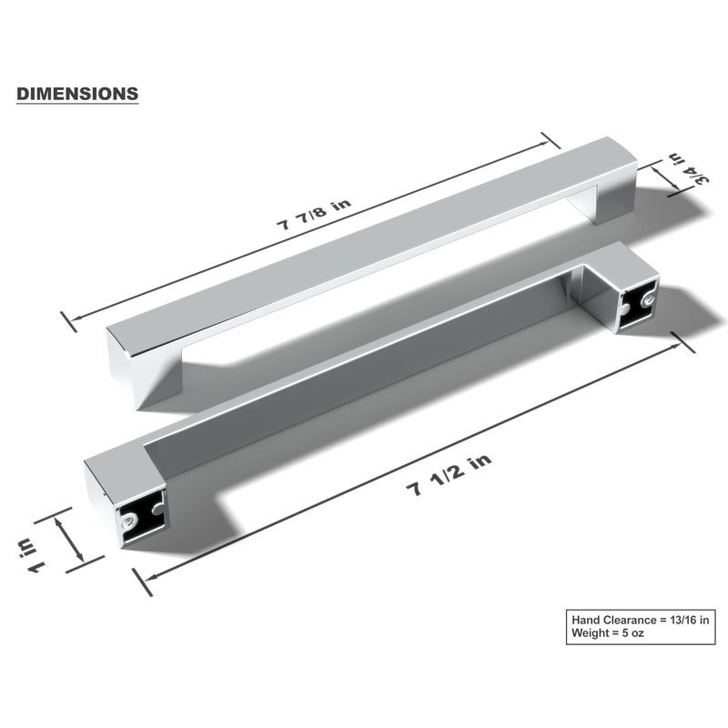 monti hardware | 5 Pack Polished Chrome 7.5 Inch Hole Center | Solid Metal Cabinet Handles Bathroom Home Decor Drawer Pulls | Stainless Metal Kitchen Cabinet Handles | Leone Collection