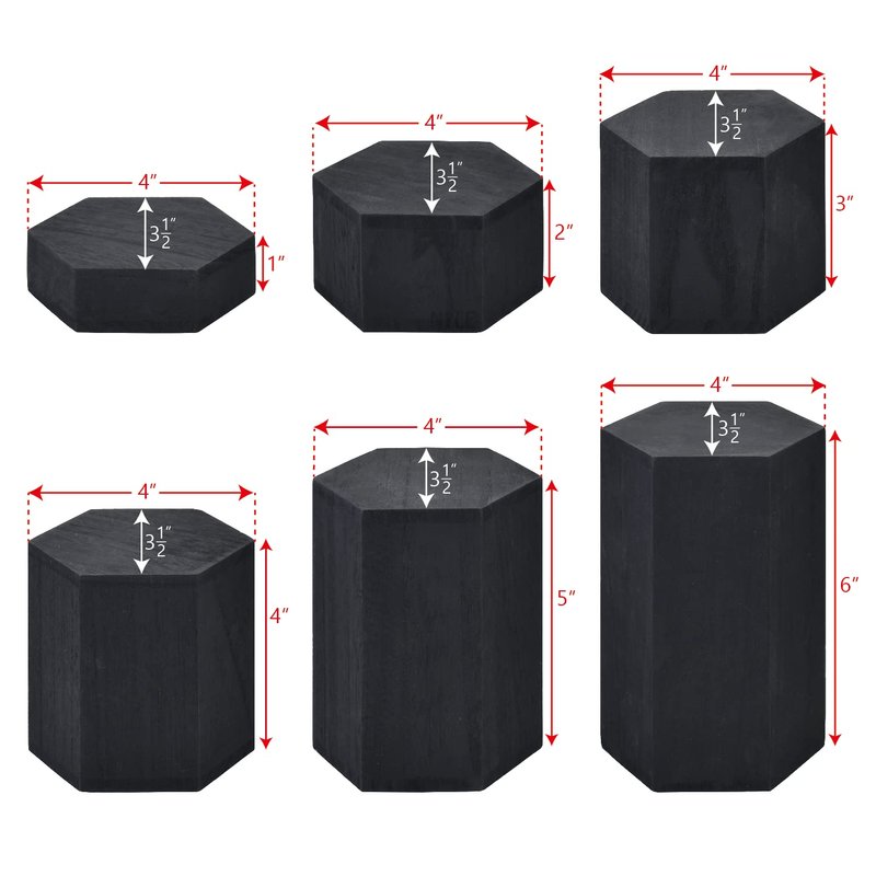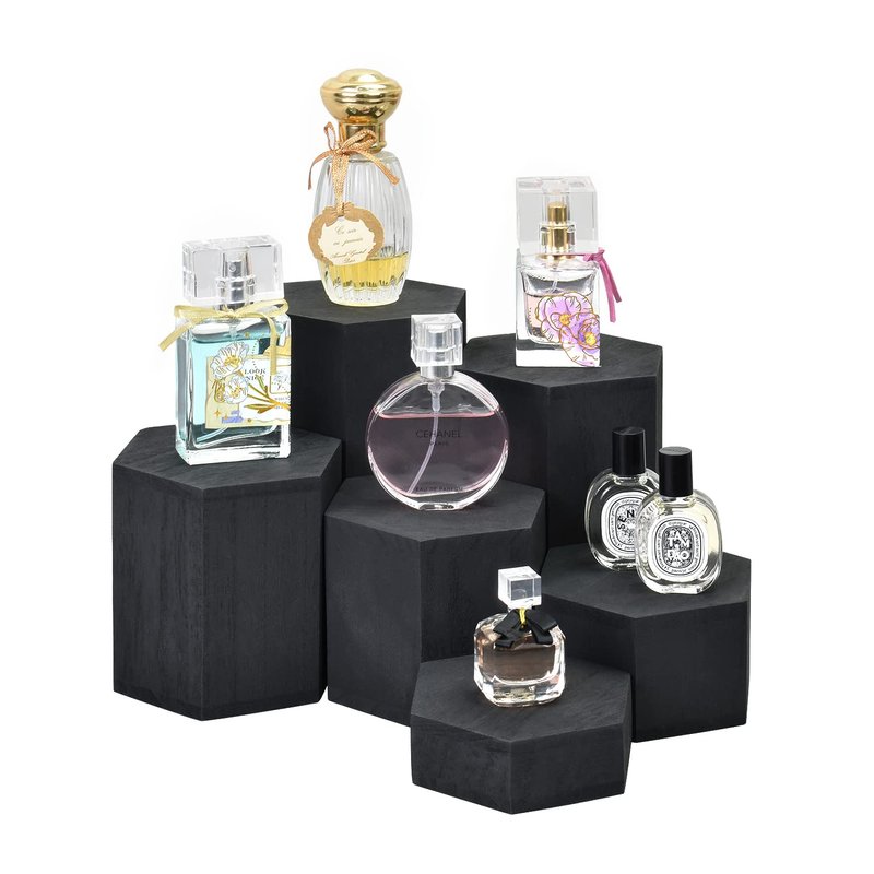 MOOCA Wooden 6 Pcs Hexagon Risers for Display Jewelry and Accessories Display Stand, Wooden Display Risers, Wood Jewelry Risers Wood Figurine Display Risers, Black Color