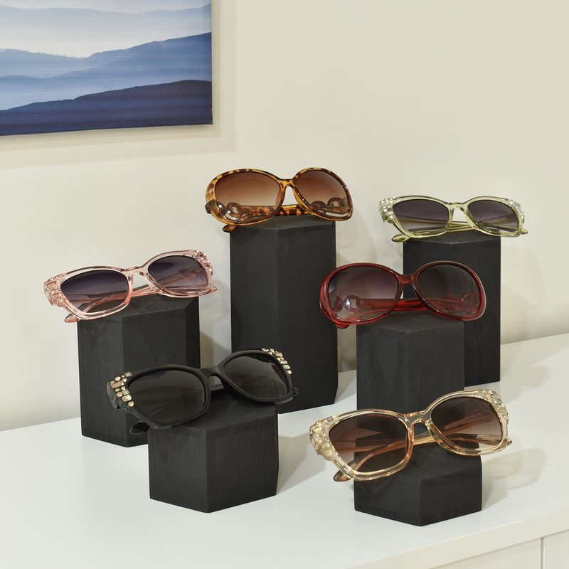- VERSATILE AND PRACTICAL BLACK DISPLAY RISERS- Perfect for displaying rings, watches, necklaces, bracelets, earrings, eyewear, cosmetics, figurines, and more on countertops.