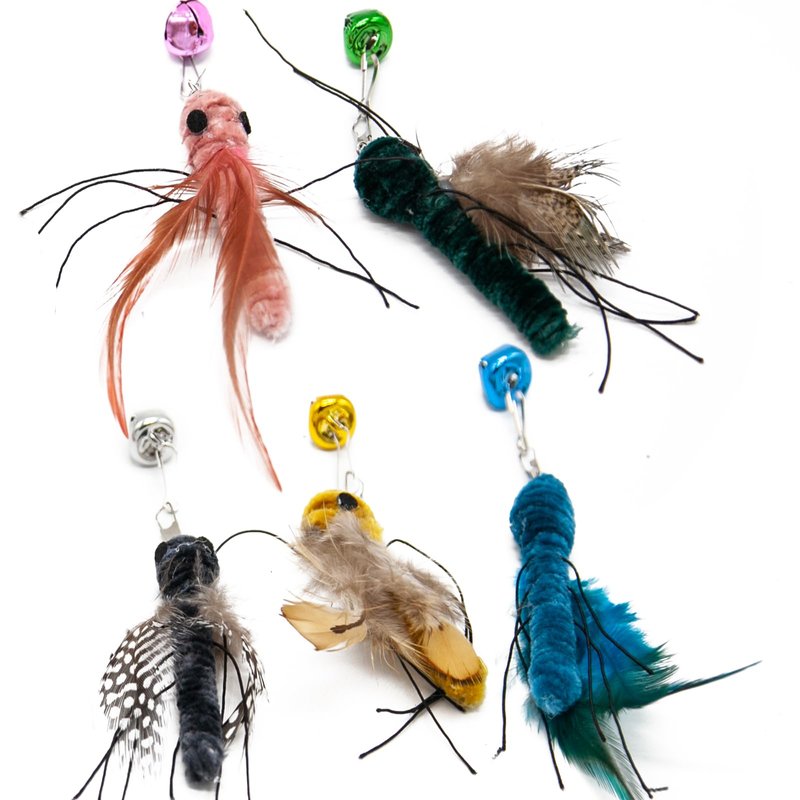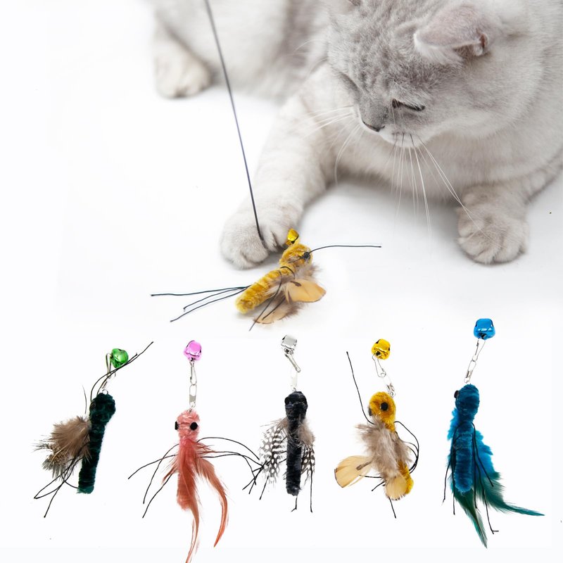- Handmade with Love: Every insect refill is handcrafted and unique, made of natural feathers and pipe cleaners, which are safe and non-toxic, and have a soft and comfortable feel. The realistic shape design makes the toy more attractive to cats, and the bell sound can stimulate the cat's hunting instinct.