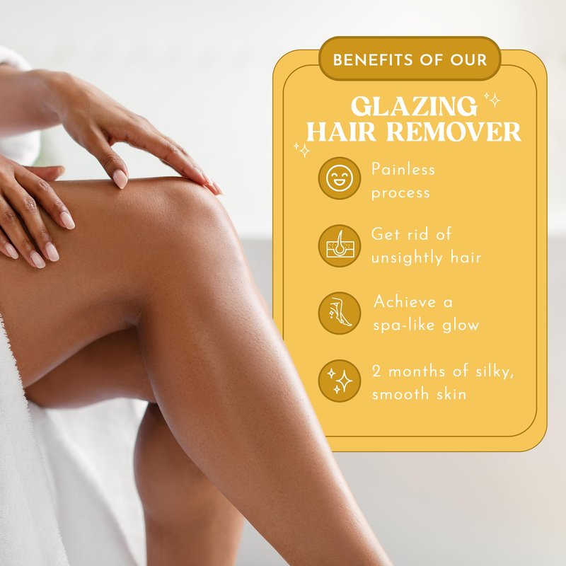 Manufactured in Canada, our Brazilian and Bikini Hair Removal Glaze is for the delicate areas around your face. Its formula consists of organic ingredients that pamper your skin: