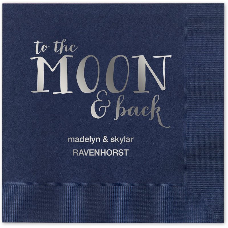 - Celebrate your next party or event with these festive cocktail napkins. Great for a baby shower, wedding, bridal shower, anniversary, or other special "to the moon and back" occasion.