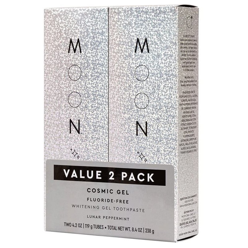 MOON Cosmic Gel Stain Removal Toothpaste, Fluoride-Free, Lunar Peppermint Flavor for Fresh Breath, for Adults (2 Pack)