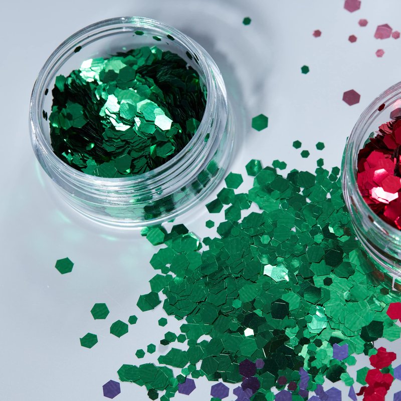- Chunky hexagon shapes|Available in 8 colours|3g|Cosmetic grade glitter|Safe to apply to Face Body and Hair|Apply glitter with Moon Glitter Fix Gel Lip Glue Hair Glue or Nail Glue|Easily removed with just water|100% Vegan and Animal Cruelty Free.