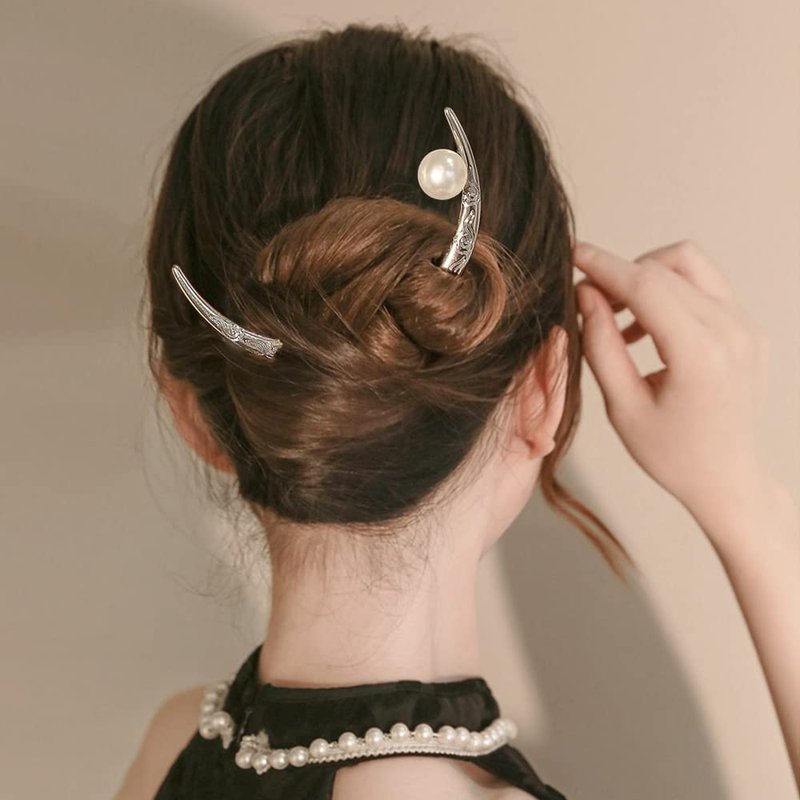 - Elegant Design: this crescent shaped hair stick is carved with beautiful pattern on the body and embed with pearl at top, exquisite & special, makes your overall look attractive & gorgeous!