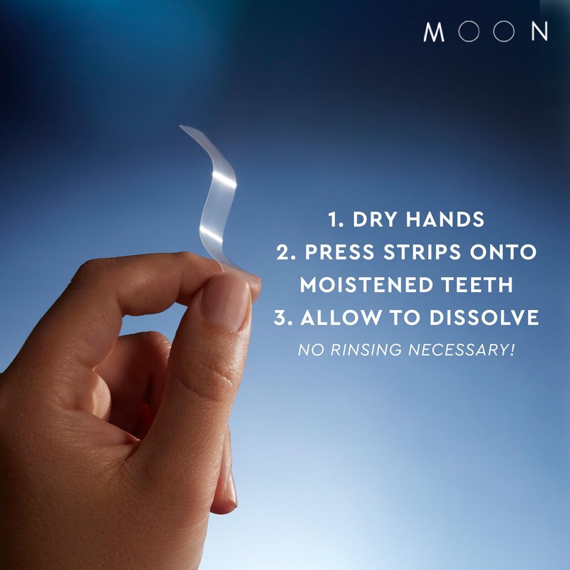 MOON Midnight Teeth Whitening Strips with HA Hydroxyapatite, 7 Shades Whiter in 2 Weeks, 28 Treatments with Dissolvable Strips, Enamel-Safe Formula, Gentle on Sensitive Teeth, Vegan, 56 Strips