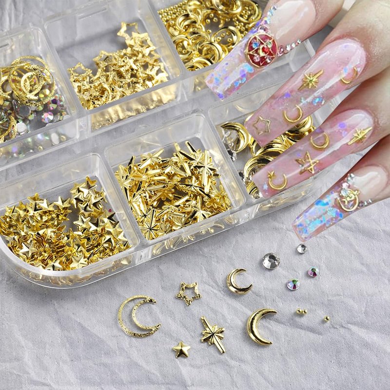 - 【3D Gold Nail Charms】 You'll get 1 box bling moon star nail studs,sufficient quantity and rich styles can meet your various needs in DIY nail art or any other handmade projects.NOTE: The glue is not included.