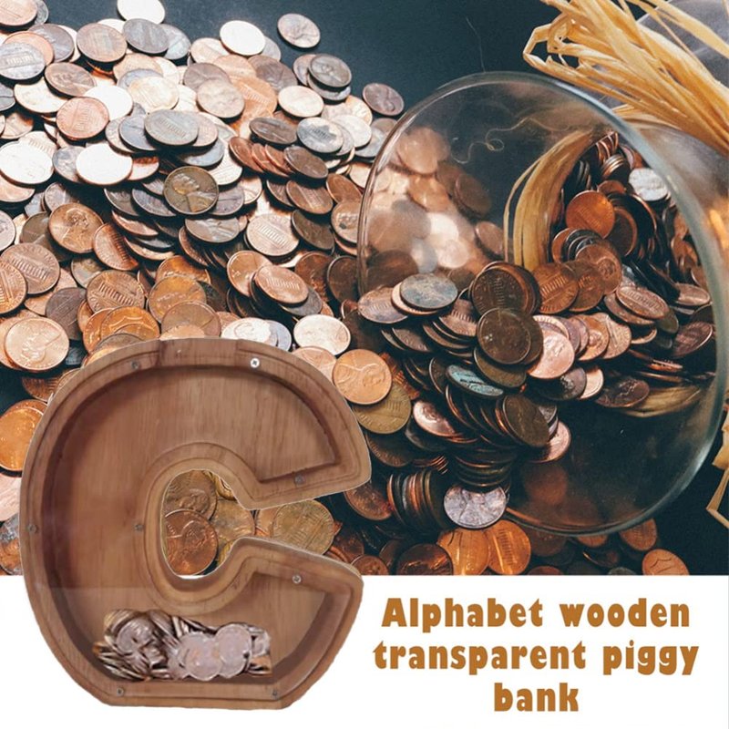 Creative Twenty-six English Alphabet Storage Tank Personalized Storage Tank This wood Storage Tank letter is a nice gift for boys and girls of any age. It's a durable, practical and educational wooden toy. Through an organic glass, a child can observe the growth of his savings. Product Information Material: Wood + acrylic Process: carving Color: walnut Size:About 7.1X7.1X1.2 Inch. There is a little difference in different sizes Weight: There is a little difference in different sizes How to take out the money: unscrew the screws can Perfect gift This wooden coin bank is a really perfect kids and adults gift for a birthday, baby showers, Valentines day, wedding or any other gifts occasion.