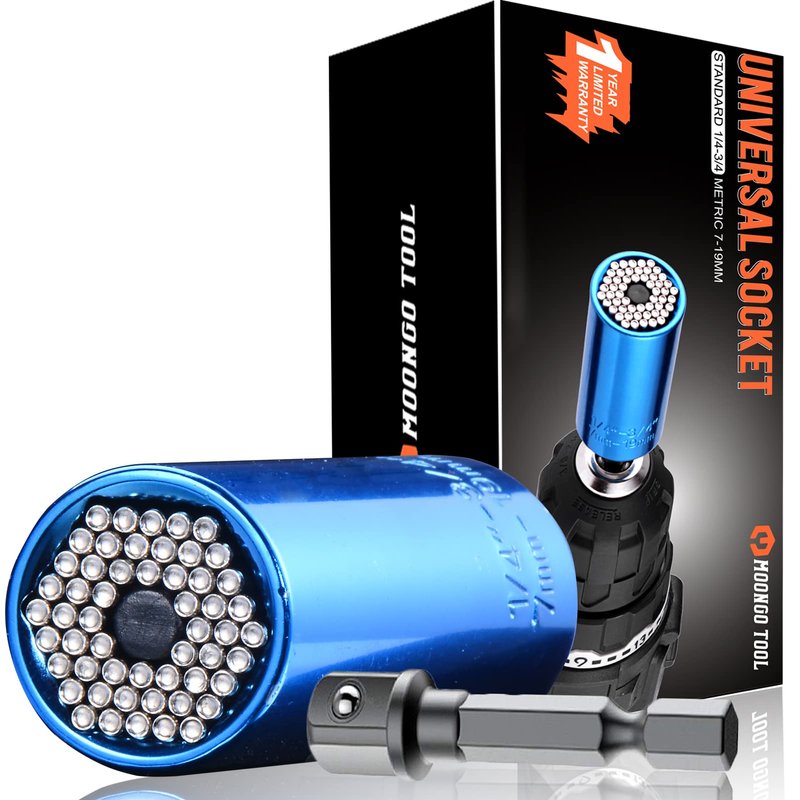 - The One Tool Can Replace The Whole Set: Imagine a single tool that can handle a wide array of tasks effortlessly. Our Universal Socket does just that! From fixing household appliances to working on cars or bikes, Super socket is designed with 54 individually hardened steel spring pins, This ingenious socket adapts to any shape, size, or angle. It effortlessly adjusts to both standard and metric nuts and bolts, saving time and frustration.