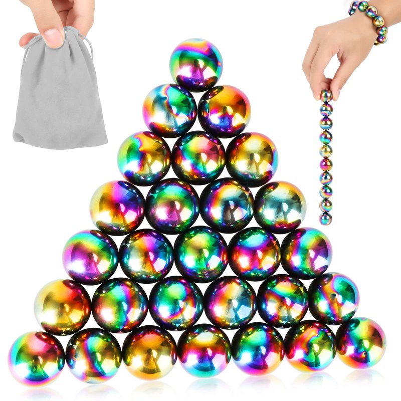 Moonhua 28Pcs Rainbow Stones Fidget Toy, 20mm DIY Mutual Attraction Desk Balls for Kids Adults, Educational Science Kit for Anxiety Relief, Building Crafts for Teens Party Favors Gift