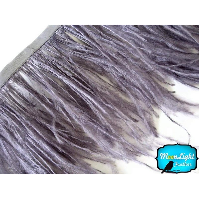 Moonlight Feather, Grey Ostrich Fringe Trim Feather - 6 Inch Strip of Ostrich Feathers
