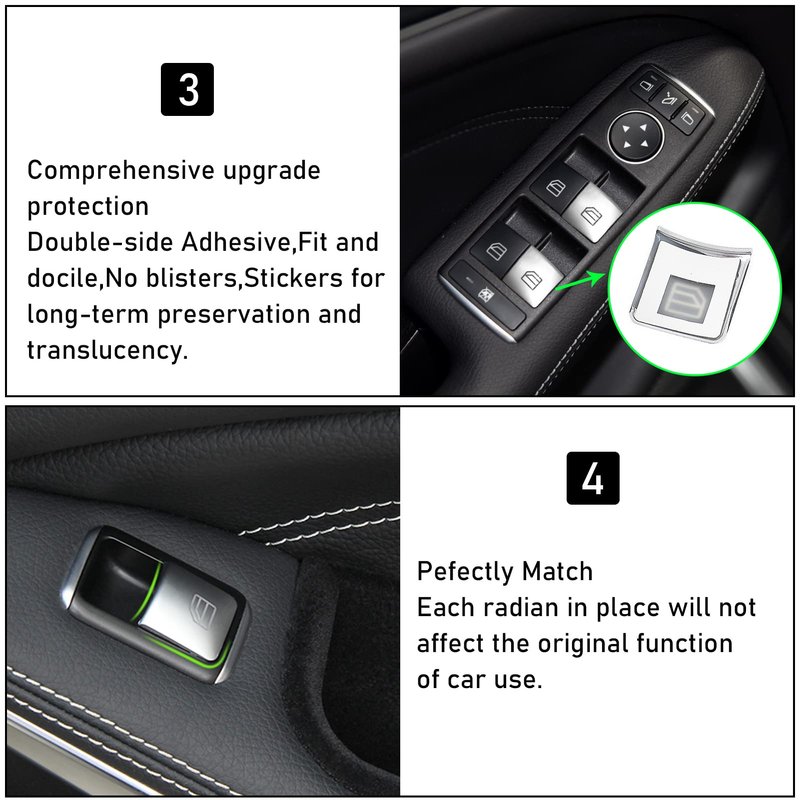 3.Perfect Fit:The Mercedes window button stickers is Molded by Original Car.