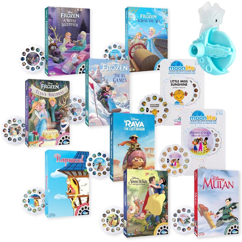 Now you and your child can share classic tales in a whole new way with the Moonlite Mega Pack! This award-winning storybook projector makes reading even more special for children and grown-ups alike! Just clip the Moonlite projector onto your smartphone or smart device (not included) and load in one of ten Story Reels. Using your device’s flashlight, Moonlite will project vivid illustrations onto any surface of your home! With the help of the free Moonlite companion app, you’ll be able to read along to each image. You can even turn on the Moonlite app’s charming sound effects, and create a magical and immersive reading experience that brings these exciting tales to life! As kids follow along, they will grow their language skills, imagination, and understanding of the world around them. Ignite a love of reading and develop your little kid’s big imagination with the Moonlite Mega Pack!