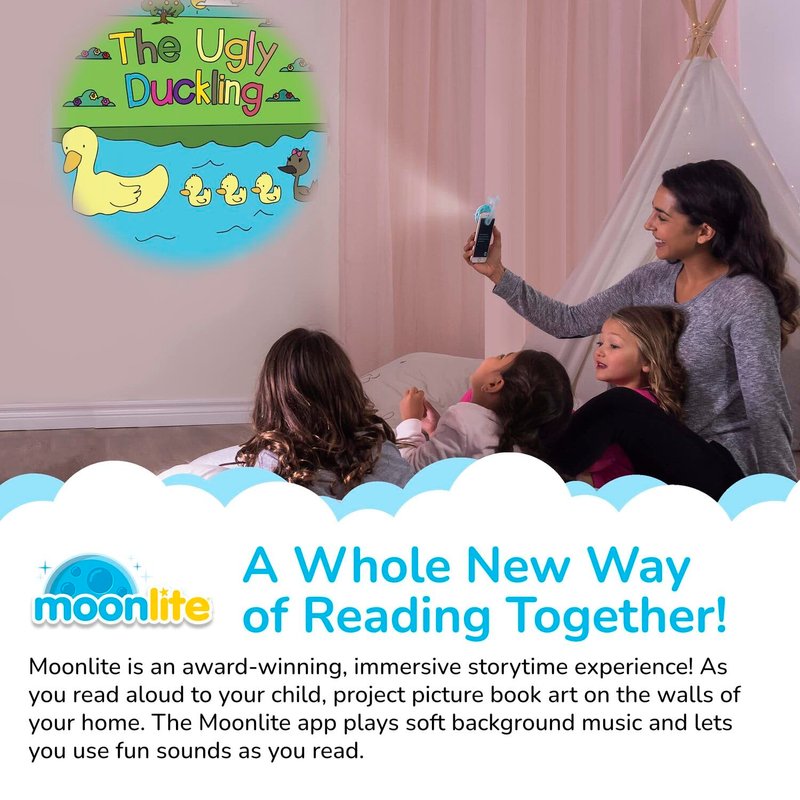 - A Better Bedtime Routine: Moonlite founder Natalie came up with the idea for interactive storytelling to transform her daughter's favorite books into magical experiences; Her goal was to engage and immerse her daughter into the stories; She invented Moonlite combining stories and imagery projection for instant magical moments