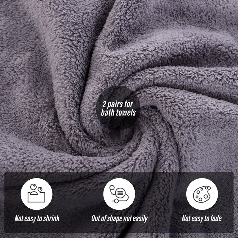 MOONQUEEN 2 Pack Premium Bath Towel Set - Quick Drying - Microfiber Coral Velvet Highly Absorbent Towels - Multipurpose Use as Bath Fitness, Bathroom, Shower, Sports, Yoga Towel (Grey)