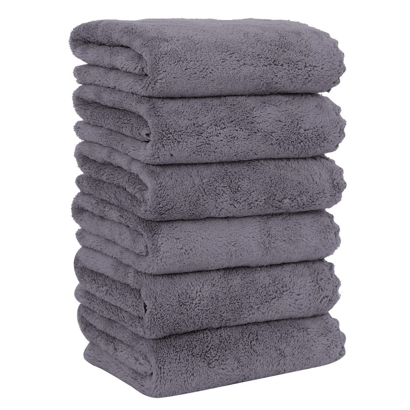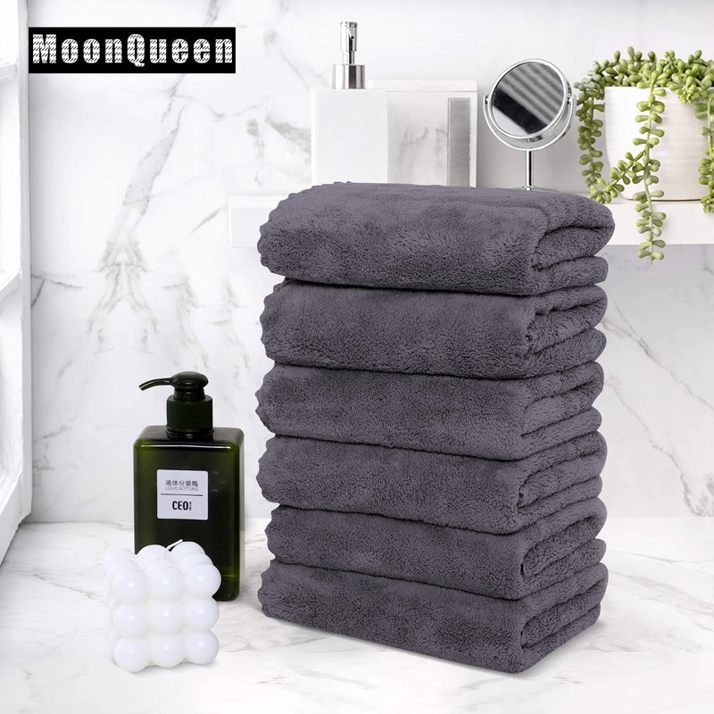 MOONQUEEN 6 Pack Premium Hand Towels - Quick Drying - Microfiber Coral Velvet Highly Absorbent Towels - Multipurpose Use as Hotel, Bathroom, Shower, Spa, Hand Towel 16 x 28 inches (Gray)
