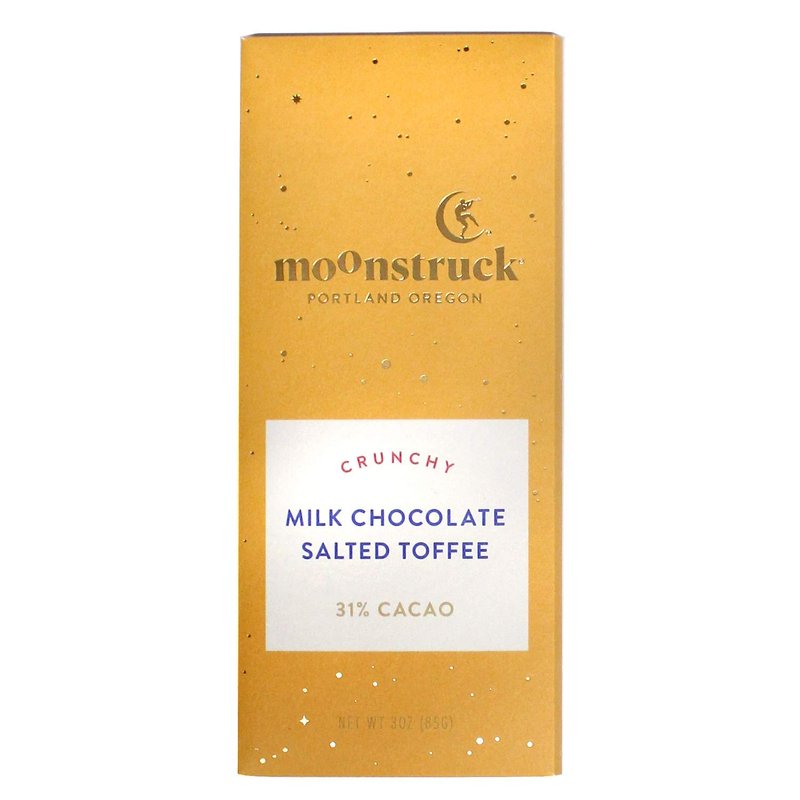 - The first cocoa beans were a gift of love from Venus herself. So, keep in mind the seductive qualities of Moonstruck Milk Chocolate Sea Salt Toffee may make you do unusual things. Love is funny that way. Actually you can buy love.