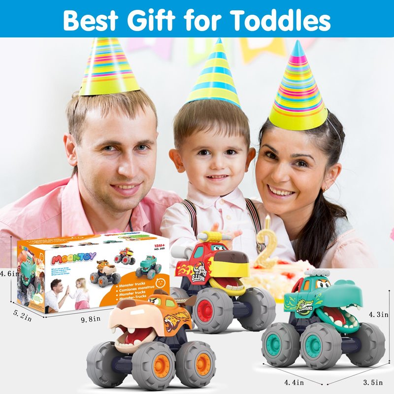 - 【Perfect Gifts for Toddler】Monster truck is a fun party favor, birthday bags gift set, Christmas gift, and any other celebrating gift for boys/girls/toddlers 1 + years old. These toys cars also offer an ideal opportunity for parents to engage fully with their children.