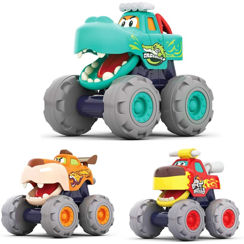 Toy Cars For 1 2 3 Year Old 3 Pack Monster Truck Toys Leopard Pull Back Car Bull Toddler Boy Car Crocodile Baby Boy Car