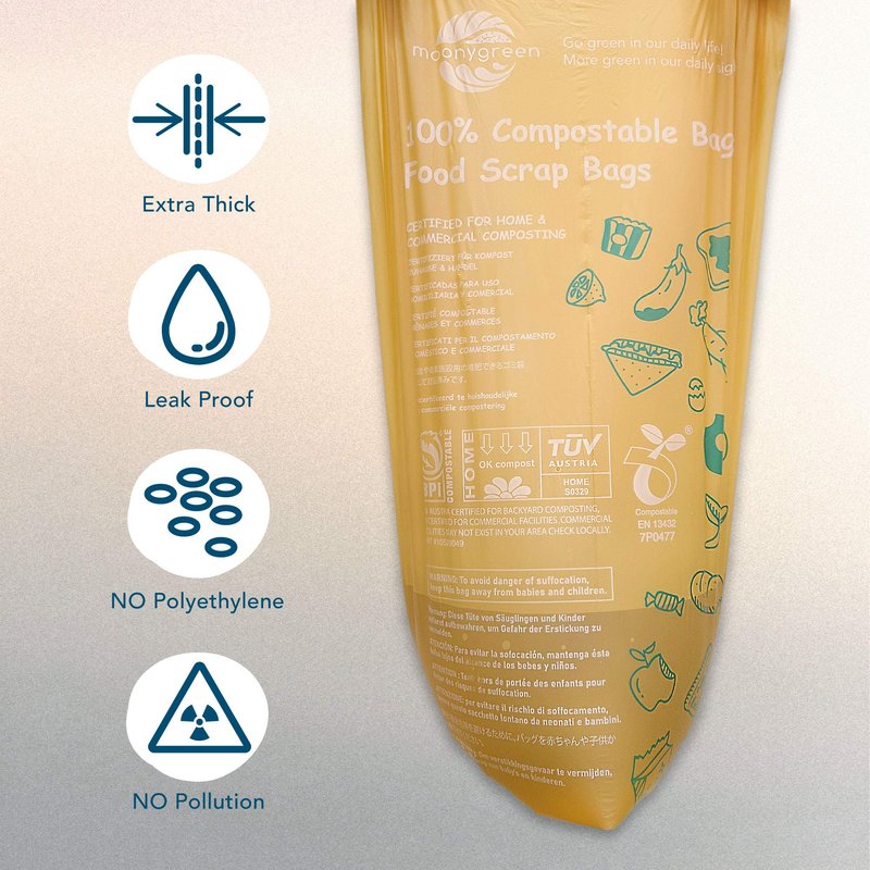 - ★ Moonygreen is one-stop solution for you : Moonygreen food scrap bags are Super-Thick, strong enough for household. The special design offer you ease in tearing off the bags. Non-Toxic feature makes you feel more secure when you use our bags. With Moonygreen, you can get a High-quality experience while protecting our Earth!