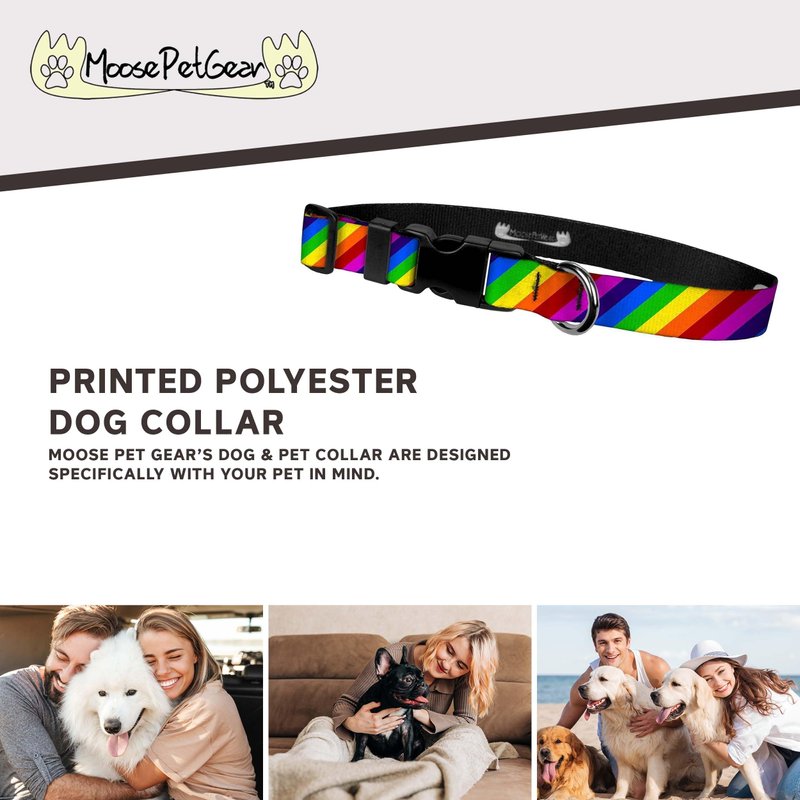 Moose Pet Wear Dog Collar - Patterned Adjustable Pet Collars, Made in the USA - 3/4 Inch Wide, Medium, Rainbow Stripe