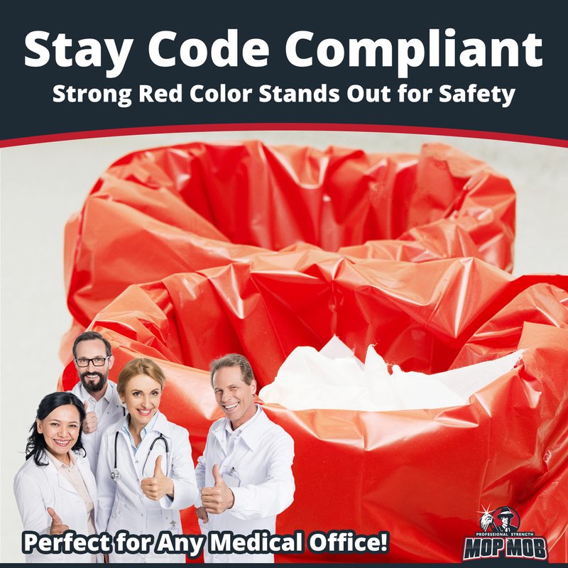 Mop Mob No Leak, Hospital Grade Biohazard Waste Bags 100 Pk. 10 Gallon, 24" Red Trash Liner With Hazard Symbol For Infectious Waste Disposal
