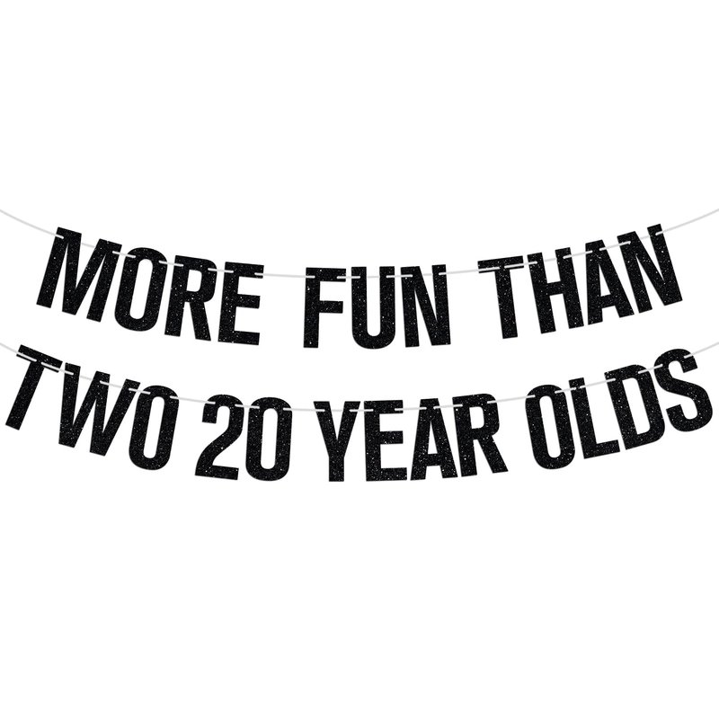 More Fun Than Two 20 Year Olds Banner, Cheers to 40 Years Birthday/Wedding Anniversary Bunting Sign, Happy 40th Birthday Party Decorations Supplies for Men Women