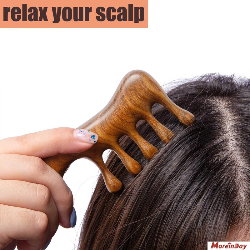 - Scalp massager comb for hair growth and scalp relax: Green sandalwood is rich in natural oil that can nourish your hair. Combing hair and massage your scalp with natural wooden scalp comb can help calm your head, relieve stress and fatigue, improve your hair growth. Combing scalp with wood massage comb everyday before bedtime and after getting up can effectively reduce hair loss