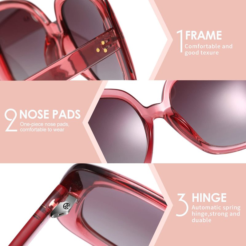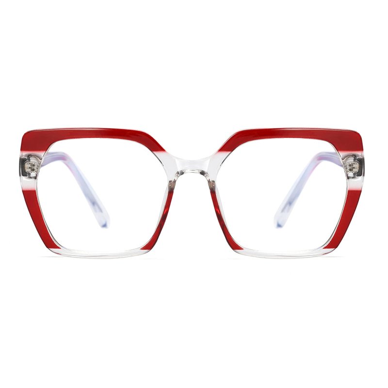 - UNIQUE STYLE-A little big thick frame and geometric shape lens, space feeling and high-fashion style. Not one single color, but different bright colors matched together regularly. We have purple, pink, black, red, green and grey. Also we do gradient colors in the tample part.