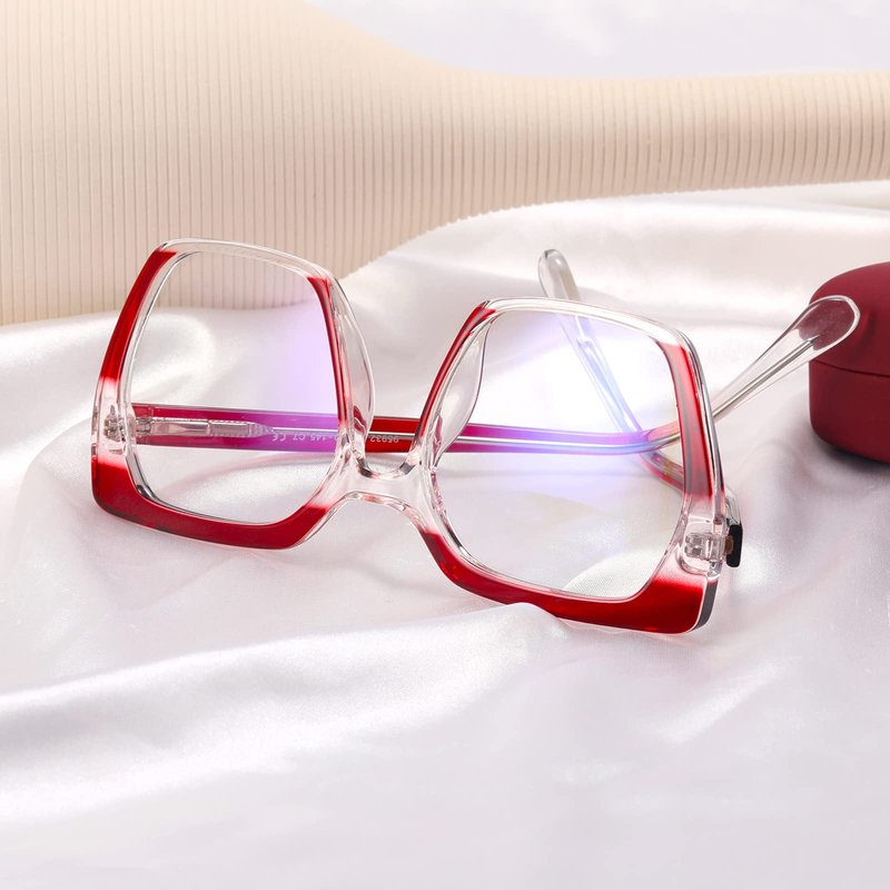MORESHINE Fashion Oversized Square Blue Light Glasses for Women Anti Fatigue Prevent Headache Computer Eyeglasses Frames (Red)