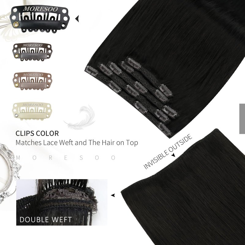 - ღ。【Service & Tips】 Moresoo human hair extensions is silky,shiny and smooth, still perform well after washing and styling. When you curl or straighten it, please control the temperature under 250F. Regarding the clips, if it is damaged during use, we can provide free replacement clips for life.