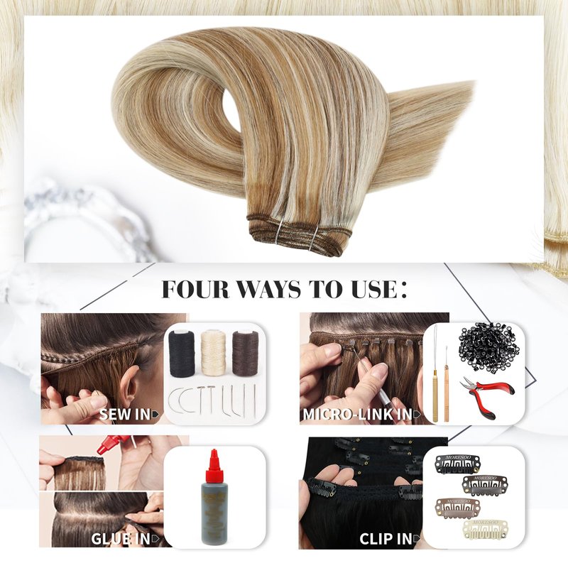 - 【Attachment】: We provide multiple attachment options for our weft hair extensions. You can choose to sew them into your hair, attach them using glue, micro rings, or clips. This versatility allows you to customize the application method based on your personal preference and hair type.