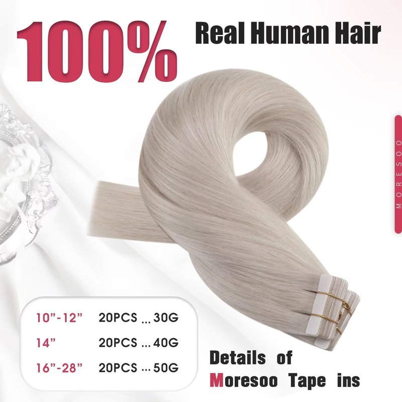 - 【Advantage】Moresoo tapes are made of American white tape, so they are strong and hypoallergenic invisible. And tape in extensions are very flat, which results in a more natural look overall when installed. Additionally, it is a very easy type of hair extension to install and remove.