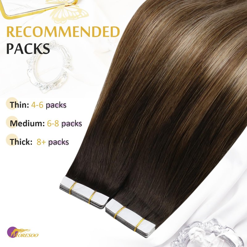 - Suitable Places: Moresoo Tape in Hair Extensions are Suitable For Any Occasion, Can Fill Your Hair in a Short Time. Suitable for Weddings, Parties, Festivals and Community Activities. Color Adds Highlights to Daily Makeup