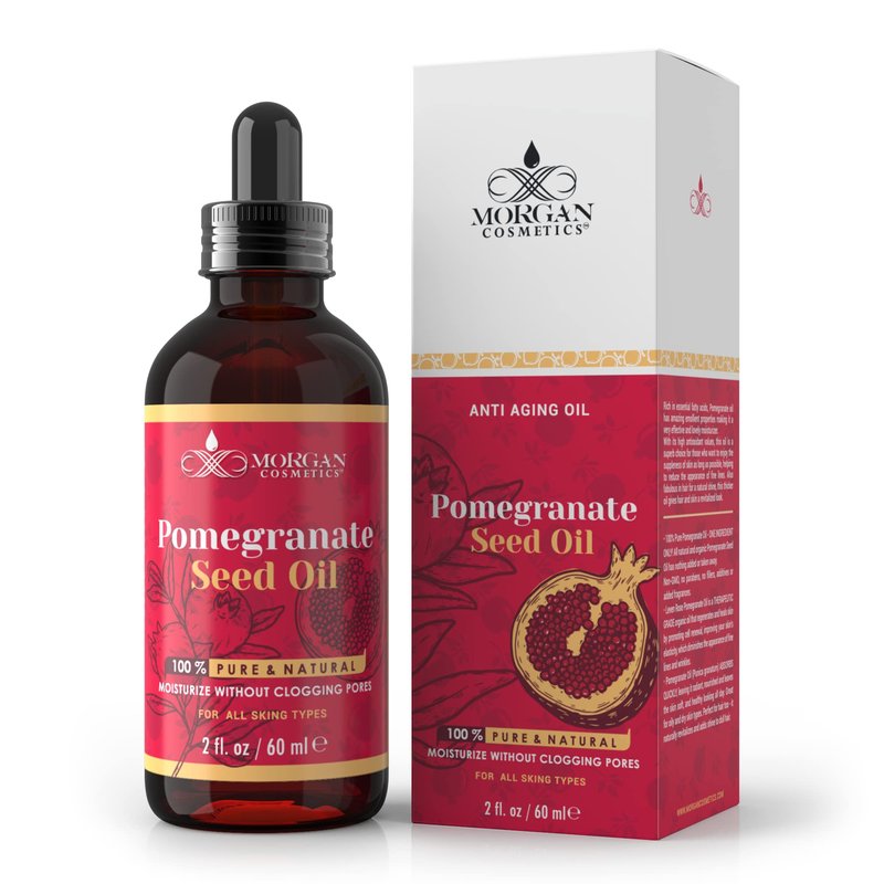 Morgan Cosmetics 100% Pure Organic Pomegranate Seed Oil - Pomegranate Oil for Skin – Unrefined and Cold Pressed Skin Oil - Leven Rose Oil Heals Skin, Diminishes Fine Lines and Wrinkles (2 FL. Oz)