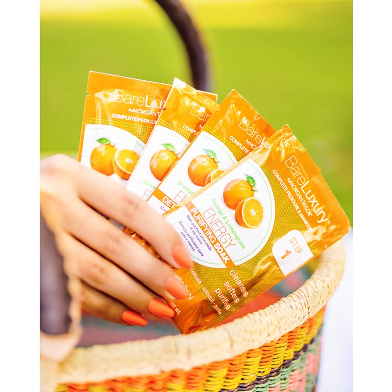 Morgan Taylor BareLuxury 4-Step Complete Pedicure & Manicure Packs (Orange & Lemongrass), Hand and Foot Spa Kit in 4 Packs, Pedicure and Manicure Kit, Self Care Gifts For Women