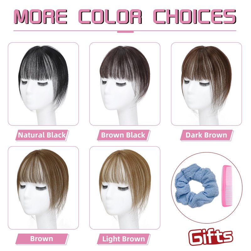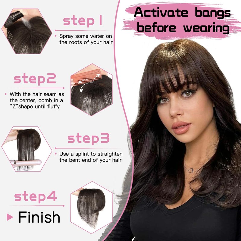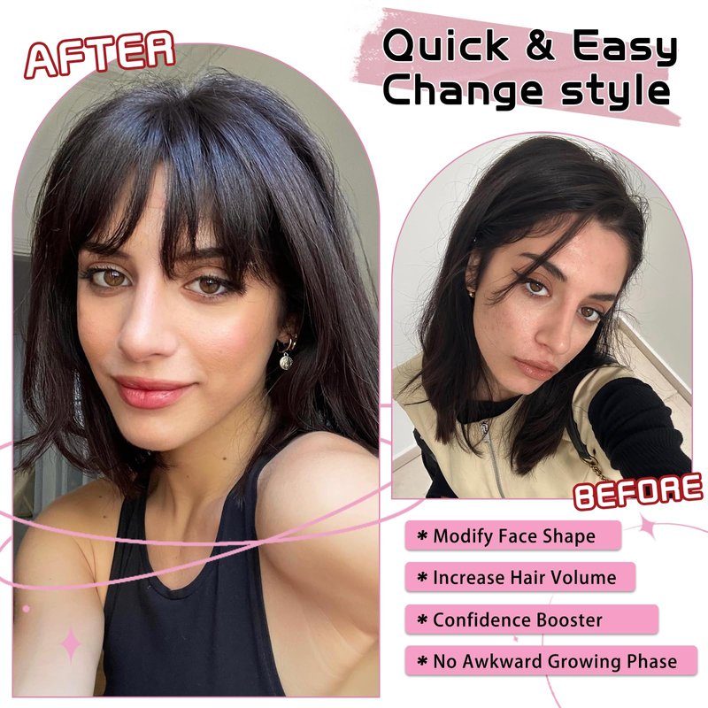 - 🌹【Try and Enjoy the Hair Topper with Bangs】:This is a great way to inspect if bangs look good on you before changing your hairstyle. Don't be annoyed about cutting a bad fringe. With this clip in bangs, you can say goodbye to the trouble of frequent trimming, and there is no awkward growth period, and you can easily create charming human hair bangs. No need to queue at the barber shop and effortlessly save time and money.They are suitable for various occasions, such as parties, cosplay, weddings, and daily wear. They can instantly transform your look and add a touch of glamour to any outfit.