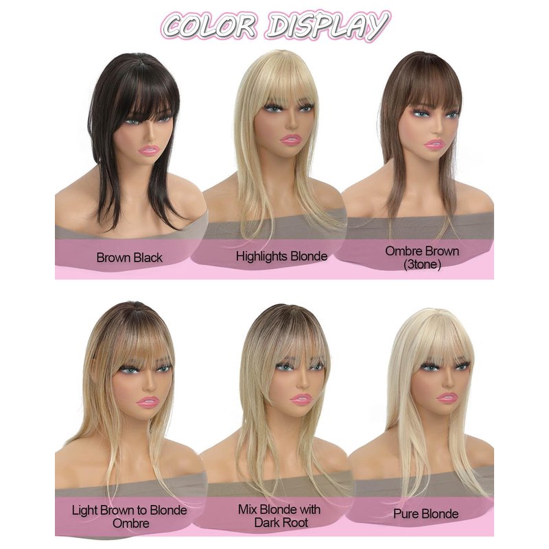 - 【Enjoy Your New Hairstyle】If you want to get bangs but not sure what it would look like, this clip in bangs is the idea choice to freely change your style without cutting your own hair. If you are worried about a high hairline or thinning hair on the top of your head, just get this clip in bangs and enjoy your whole new look.