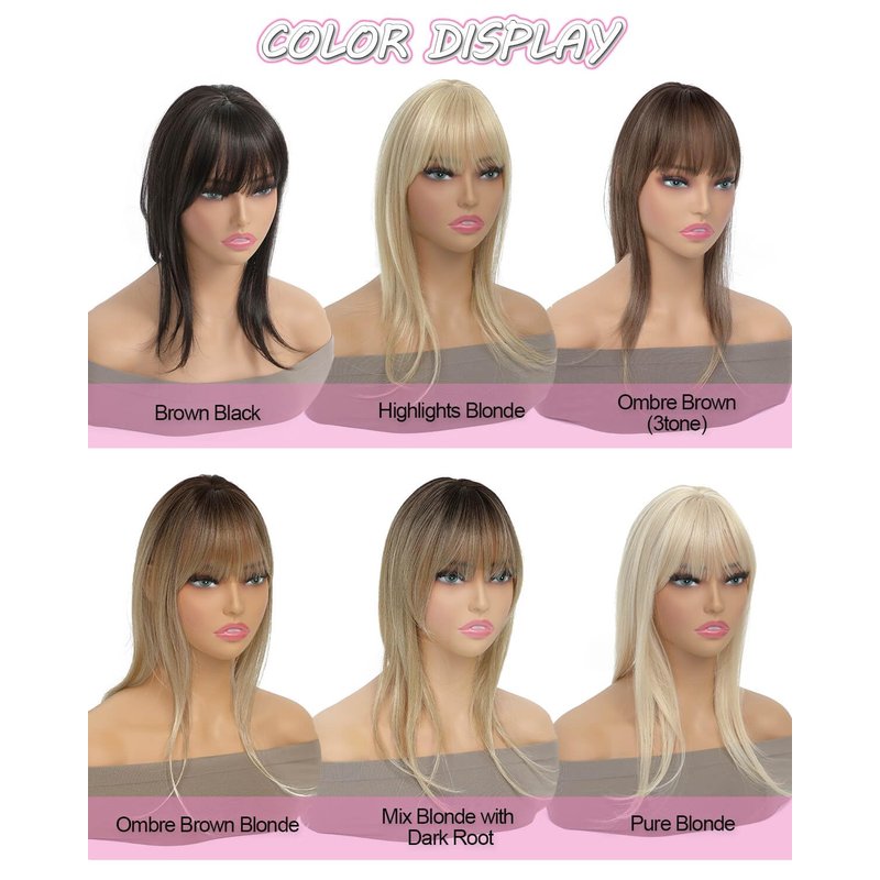 - 【Enjoy Your New Hairstyle】If you want to get bangs but not sure what it would look like,this clip in bangs is the idea choice to freely change your style without cutting your own hair.If you are worried about a high hairline or thinning hair on the top of your head,just get this clip in bangs and enjoy your whole new look.