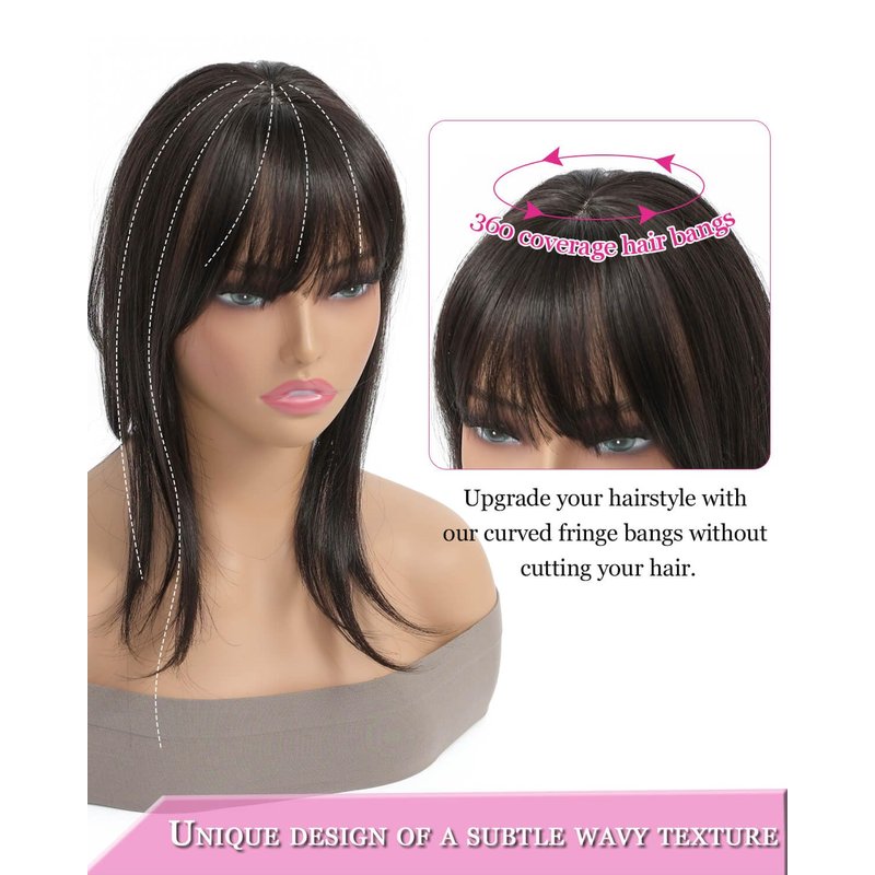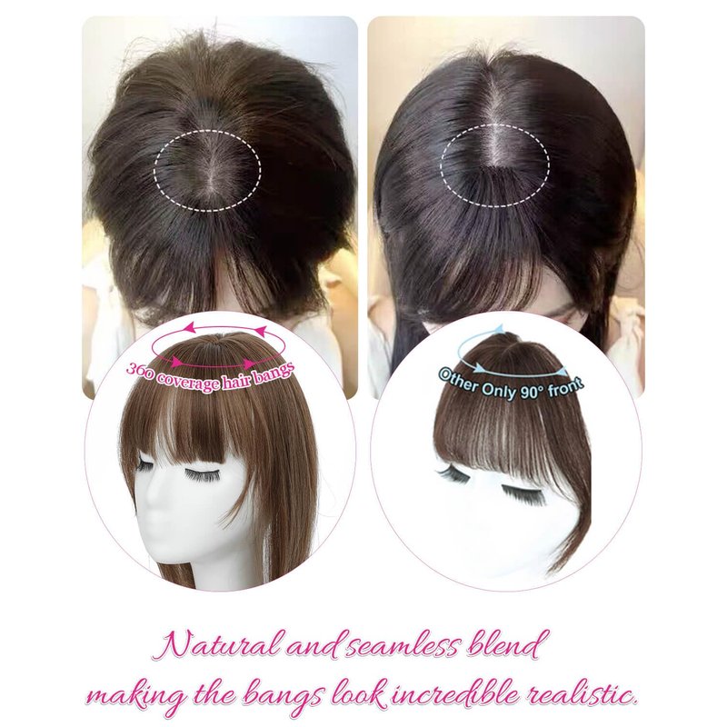 - 【Unique Design】This clip in bangs are designed with a subtle wavy texture that will blend well with your natural hair and frame your face nicely.Upgraded 360°bangs use a mimic scalp with natural hair seams,and no one will guess the key to having wonderful hairstyle.