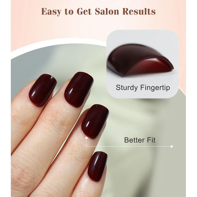 - ANY OCCASION - SHOW YOUR CHARM: The right length to embellish your hands while making it easy to do anything. Party, shopping, dating, going to work, doing housework, etc, you name it, these beautiful wine red press on nails can accompany you.