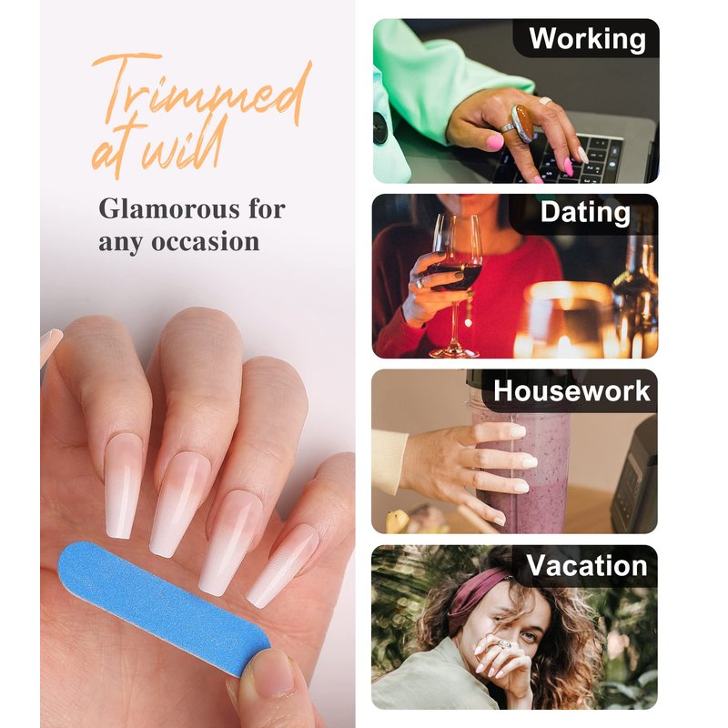 - DIY Nails at home - We add a gel top coat to these gradient press-ons to give them a more realistic and nice look. You can wear these ombre nails press on directly, you can also design your own style to your liking. Great for salon purchases or home DIY.