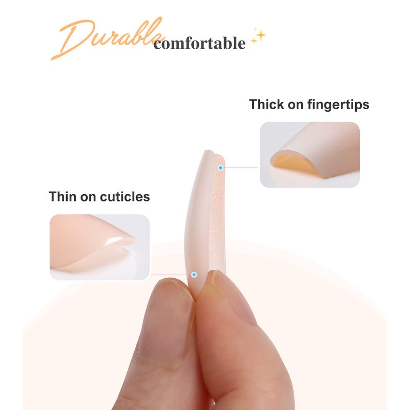- Not Easy to Bend - To make these glossy fake nails stronger and more durable, we use a design with thin cuticles and thick fingertips, which makes your fingers more comfortable when wearing them and also not easy to bend or break.